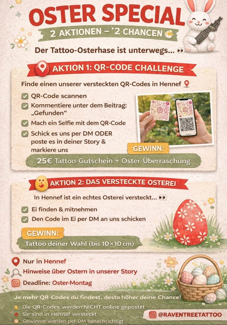 Bei Raven Tree Tattoo erwartet dich eine exklusive Aktion.